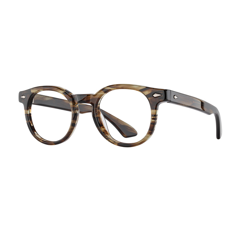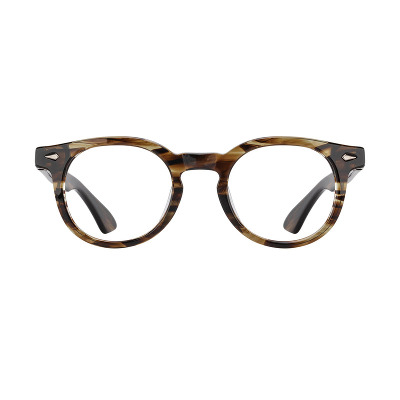 Keaton brings a sought after shape into the 21st century. A classic P3 professorial shape and keyhole bridge are hallmarks of vintage style. Colorways including rich demis and a matte black option offer a fresh, modern-feeling take on the look. The signature AO silver spearhead decor draws the eyes upward, making the distinct shape easier to wear.